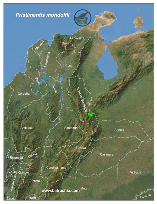Nombres anteriores (sinonimia): Eleutherodactylus mondolfii Rivero, 1984;Pristimantis mondolfii Heinicke, Duellman & Hedges, 2007.