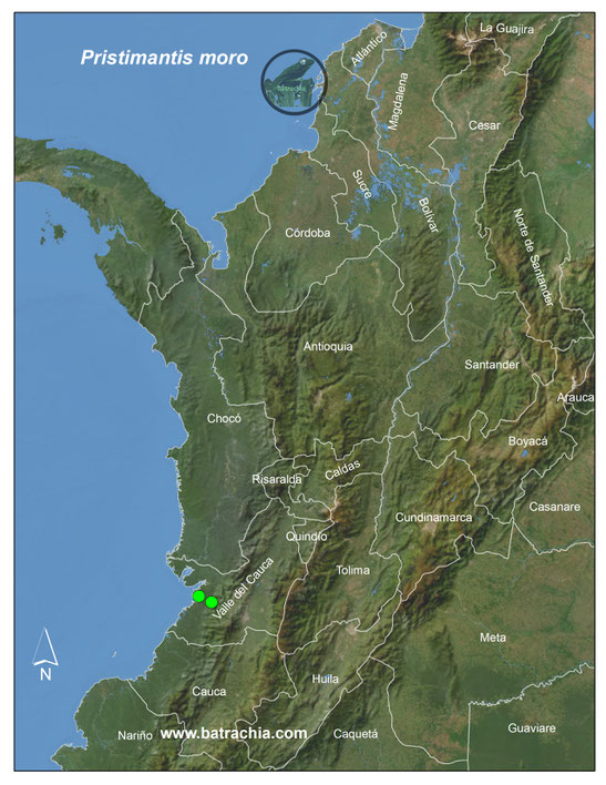 Nombres anteriores (sinonimia): Eleutherodactylus moro Savage, 1965;Eleutherodactylus lehmanvalenciae Thornton, 1965;Pristimantis moro Heinicke, Duellman & Hedges, 2007.